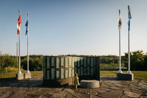 The Afghanistan War Monument and Park is a half acre pocket garden and outdoor living museum,  a memorial for fallen soldiers, a place to honour silver cross families,  and to learn about the regional military history for northwestern Alberta. The park includes the monument and walkways with “points of interest” for visitors to explore. There is also a miniature replica of the St Louis "Peace Arch".