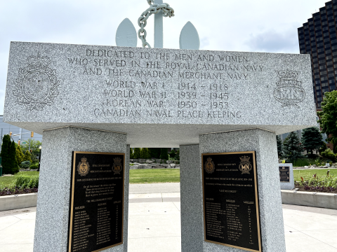 In 2019, the Royal Canadian Naval Association with support from the City of Windsor, Windsor Port Authority, Royal Canadian Legion Branches, Navy League Windsor Branch, Veterans Organizations and the citizens of Windsor and Essex County initiated a project to commemorate the contributions and sacrifices made by those who served in the Royal Canadian Navy and the Merchant Navy with the addition of four black granite Memory Panels.