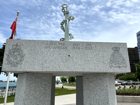 The Naval Monument was erected in 1996 by the Royal Canadian Naval Association, Admiral Hose Branch Windsor and dedicated during the Battle of the Atlantic service on May 4, 1997.