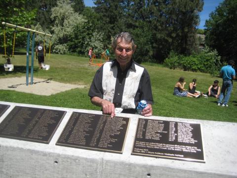 Sue Gibbons, the daughter of the late Navy veteran Bob Jenkins, set the wheels in motion in 2009 to provide the recognition. She approached the Area F Parks Commission and the Regional District of Okanagan-Similkameen. In 2010, the RDOS applied for and received $18,000 in federal matching grants for park upgrades. The Veterans; Tribute in Selby Park came into being thanks to a grant from Veterans’ Affairs Canada. The park designers were architect Chris Allen, and Cal Meiklejohn. The RDOS received a maximum of $24,520 through the Community War Memorial Program.
