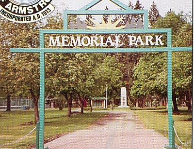Erected by the municipalities of Armstrong and Spallumcheen, this memorial park is dedicated to local veterans. It contains several other memorials, including a signboard display with badges and flagpoles, two shafts (one dedicated to the men of the First World War and the other to those of the Second World War), “Stones of Sacrifice” with an explanatory plaque. Refer to the following memorial numbers: Shaft dedicated to the men of the First World War: 59014-013 Signboard dedicated to the men of the Second World War: 59014-004 Stones of Sacrifice: 59014-019