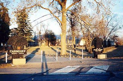 Veterans Memorial Park is where people can come and remember loved ones, relatives or friends who paid the supreme sacrifice in the First and Second World Wars. The park is bordered by a chain link fence on three sides and an ornamental steel fence facing the street with a wide gateway.