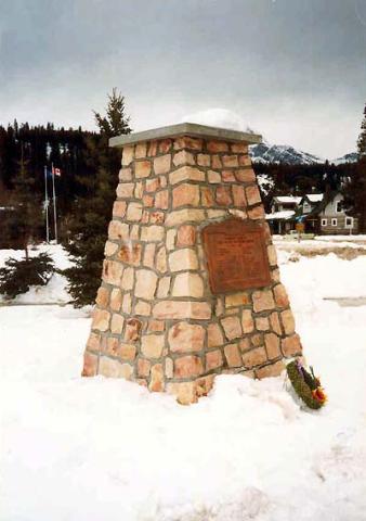 This memorial was erected by Royal Canadian Legion Branch No. 123 and is dedicated to the men and women of the Canadian military who died while in service. It was constructed in 1967 in memory of The Canadian Armed Forces who lost their lives in defense of their Country. The memorial was made of cement and stuccoed with a metal cross located on the top of the Cenotaph. In September, 1990, the memorial was refaced using quartizite and tinole stone. The corners, base, and cross were reinforced with cement. The 90MM anti-aircraft gun was obtained in 1967 from the west coast. The gun was mounted on a cement base. Wreaths are laid by the memorial each November 11th.