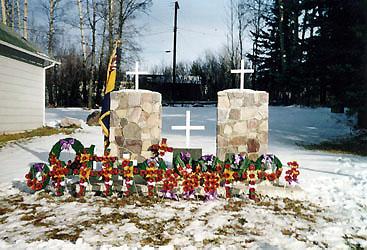 The Panoka and District Cenotaph was erected around 1960, in memory of our fallen comrades who served in World War I, World War II and Korea. A newly constructed Cairn shaped Cenotaph constructed of local field stone was unveiled in June of 1961, in honour of our fallen comrades who served in WWI, WWII and Korea. The total cost to Ponoka Branch 66 was 1156.50 dollars, which included landscaping. Volunteers of the branch picked and hauled the field stone. Events held at the Cenotaph include Drumhead Services and the annual Remembrance Wreath Service. For over thirty years upkeep and maintenance of the grounds was performed by legion members but in recent years the Town of Ponoka has taken over this task. The Legion Branch recently repaired and repainted the stonework at a cost of 900.00 dollars. The Canadian flag flies at the rear of the Cenotaph and is always kept in good repair.