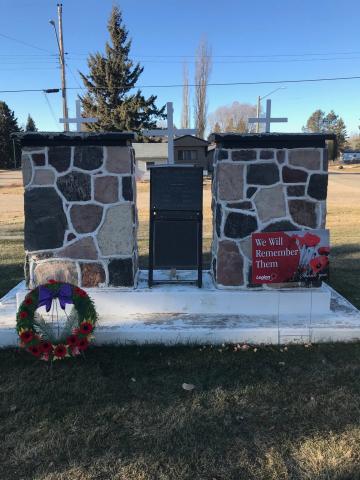 A memorial plaque was struck at a cost of 255.00 dollars which contains the names of Ponoka and area people who gave their lives in World War I. It was originally placed on the outside wall of the Elks Memorial Hall in August 1928, where it remained for over thirty years. After that time it was removed and when the Cenotaph was completed and the grounds landscaped in 1961 this plaque was placed near the Panoka Cenotaph where it remains at this present time.