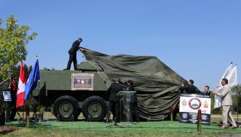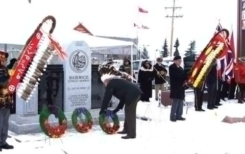 Members of the Ponoka Legion celebrated Saturday, Oct. 3 2015 new improvements to their cenotaph that recognizes fallen Ponoka veterans. new rail, cement work and a ramp for members with wheelchairs.