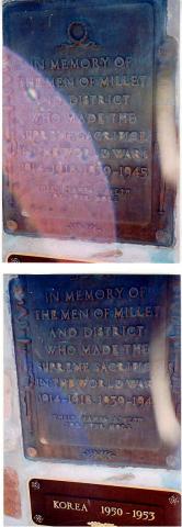 This memorial to the local war dead and veterans of the First and Second World Wars and the Korean War was erected by Royal Canadian Legion Branch No. 205.