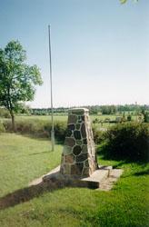 Two fieldstone cairns, two crosses, cement base and two metal flagpoles