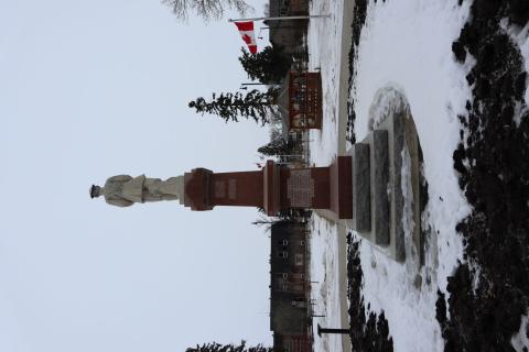 This memorial to those who served in the South African War, the First and Second World Wars, the Korean War and the Persian Gulf War was constructed by Royal Canadian Legion Branch No. 108.