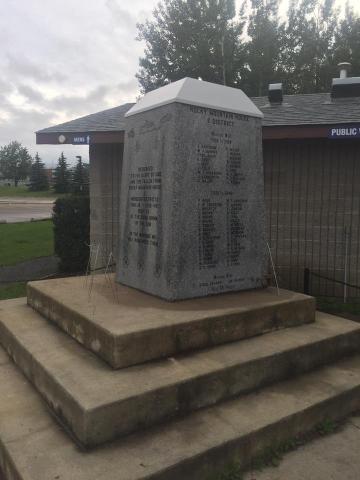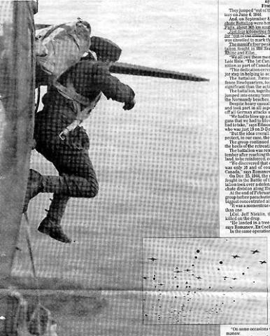 On September 8, 2000, a ceremony was held to honour the men of the 1st Canadian Parachute Battalion. It was held near Siffleur Falls, about 365 km southwest of Edmonton and about 4 kilometres from the mountain named Ex Coelis, Latin for "out of the clouds". They jumped "out of the clouds" and this was the battalion's motto. A memorial was unveiled at this ceremony to mark the group's heroic wartime service. The massive four peaks of the Ex Coelis mountain represent the major campaigns the battalion fought in the Second World War: Normandy, Ardennes, Rhine and Elbe. The memorial, a sister to the Le Mesnil monument in size and shape, serves three purposes: to identify the mountain and the battalion, pay tribute to the men who rest in foreign lands and those who died after the war, and affirm that while battalion members were operationally part of the British 6th Airborne Division, their role as soldiers was as Canadians. The battalion, the forerunner of postwar Canadian airborne formations, suffered more than 540 casualties. The men of the group won 18 honours and awards and 19 Mentioned in Dispatches. The project was spearheaded by the late Norm Toseland, a former Lieutenant in the battalion. Walt Romanow, a battalion veteran, brought the project to completion. Source: The Western Sentinel story from The Edmonton Sun