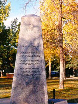 [The east face of the cenotaph contains the poem "In Flanders Fields" by John McCrae./Le poème « In Flanders Fields », de John McCrae, est inscrit sur le côté est du cénotaphe.]
