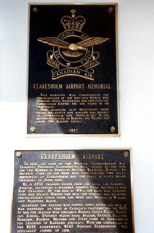 THIS MEMORIAL WILL COMMEMORATE THE CONTRIBUTION OF THE MEN AND WOMEN WHO PLANNED, BUILT, MAINTAINED AND OPERATED THE CLARESHOLM AIRPORT FOR THE YEARS OF ITS EXISTENCE.