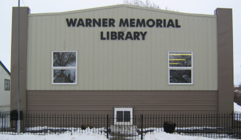 The Warner Lions Club planned for a permanent library building and purchased an Air Force building from the Canadian Forces Base in Lethbridge. With volunteer help, the building was torn down and set up on a donated lot. The Warner Memorial Library was officially opened January 16, 1951 as a memorial to those men and women who were the builders of the community and to those who served their country in the wars.