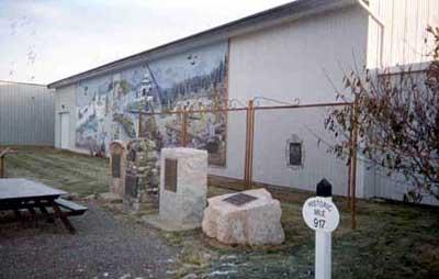 The mural depicts the original construction of the Alaska Highway by the U.S. Army Engineers. The decorative fence and plaques affixed to it do not specifically commemorate military units, but rather the importance of the highway itself. A number of markers along the highway indicate the original distance in miles to Mile 0 in Dawson Creek, B.C. One of those markers is located beside the plaques. This memorial is dedicated to the Military Engineers of Canada and the United States. It was erected by the Canadian Military Engineers.