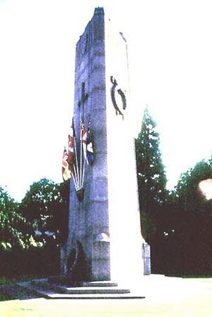This Cenotaph commemorates those who were among the men who, at call of King and Country, left all that was dear, endured hardship, faced danger, and finally passed from the sight of men by the path of duty, giving their own lives that others might live in freedom. Let those who come after see to it that their names be not forgotten. The war memorial in Vancouver is a gray granite obelisk, thirty feet high, at the foot of a gentle slope in a small park, Victory Square, on nine-tenths of an acre of green lawn, with ornamental trees and flower beds. Victory Square is bounded by Hastings Street, a busy principal thoroughfare, Cambie, Pender and Hamilton streets and, due to its central location and keystone shape, has been styled the keystone of Vancouver, now, 1944, a metropolis ten miles wide by five deep, of 400,000 people. The Cenotaph was erected by public subscription in 1924, is of Nelson Island granite engraved with suitable inscriptions, and is kept continuously banked high with wreaths of flowers and adorned with national flags. The monument has three, not four, sides; one side faces Hastings Street, the others Pender and Hamilton Streets, and was designed thus by Major G.L. Thornton Sharp, architect, town planner, and park commissioner, to conform to the triangular shape of the park. It is so placed that, when approached from the east, it appears in the distance centrally at the end of busy Hastings Street. The granite was supplied by the Vancouver Granite Co., Ltd., and the erecting contractors were Messrs. Stewart and Wylie; Mr. Stewart died from the effects of an accident whilst preparing the memorial. The Vancouver War Memorial Committee of twenty-four, of which twelve represented the Canadian Club of Vancouver, and twelve the Civic War Memorial Committee, the whole under the chairmanship of F.W. Rounsefell, Esq., pioneer, and with J.R.V. Dunlop, Esq., of the Canadian Club, as honorary secretary, were the public-spirited sponsors. The Cenotaph cost $10,666.000. The first, commencing "Their name", is from Ecclesiasticus, 44th chapter, 14th verse, and, the second, commencing "Is it nothing", from Lamentations, chapter 1, verse 12. The word, "cenotaph" is derived from the Greek, "kenos", empty, and "taphos", a tomb, and means a tomb in memory of one buried elsewhere, i.e., an empty tomb. The ornamentations on the stone include one long sword and two wreaths, one of laurels, the other of poppies; both entwined with maple leaves. A stone replica of the steel helmet, as used in the war of 1914-1918, adorns three corner buttresses. A larger wreath of laurels surrounds the numerals "1914-1918" at the base of the front. Slots in a receptacle of three bronze maple leaves hold the staffs of the Union Jack, the White and Canadian Ensigns, always flying, which are placed there by the Canadian Legion, British Empire Service League, and renewed four times each year. The Cenotaph was unveiled by His Worship W.R. Owen, Mayor of Vancouver, in the presence of an assemblage of 25,000 persons, naval, military and civilian, and including the Old Contemptibles, 7th British Columbia, 29th Vancouver, 72nd Seaforths, 2nd Canadian Mounted Rifles, 47th New Westminster, and 102nd North British Columbian Battalions, C.E.F., and others, on Sunday, 27th April, 1924. It was dedicated by Hon. Major the Rev. Cecil C. Owen, M.B.E., V.D., D.D., chaplain of the 29th (Vancouver) Battalion, C.E.F., "To the Glory of God, and in thankful remembrance of those who served their King and Country overseas in the cause of truth, righteousness and freedom." The 24th Psalm was read by Hon. Lt.-Col. the Rev. G.O. Fallis, C.B.E., E.D., D.D., of the Methodist Church, and the music included "O Canada" (Buchan); "O God, Our Help in Ages Past"; "Lochaber No More" (bagpipes); "For All the Saints"; "Last Post" and "God Save the King". The first wreath, being the tribute of the Corporation and Citizens of Vancouver, was reverently placed by Mrs. W.R. Owen, wife of His Worship the Mayor. In his valedictory address, Major the Rev. Mr. Owen said: "Those whose sacrifices this Cenotaph commemorates, were among the men who, at call of King and Country, left all that was dear, endured hardship, faced danger, and finally passed out of the sight of men by the path of duty, giving their own lives that others might live in freedom. Let those who come after see to it that their names be not forgotten." J.S. Matthews, City Archives, City Hall, Vancouver, 1944.