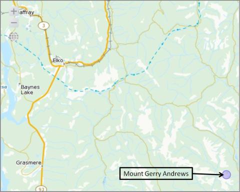 Map - Location of Mount Gerry Andrews (map by Natural Resources Canada/ Government of Canada)