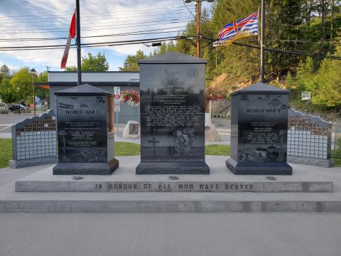 The Kimberley Cenotaph and Kimberley Veteran Memorial Park were unveiled on July 8, 2017. A Veterans group, Military Ames, realized the old cenotaph was in need of being replaced, as it was crumbling and had moss growing on it. They approached the City of Kimberley about a vacant lot downtown, presented their plans for a Memorial Park and cenotaph, and the City dedicated the land to them. Military Ames received several grants and assistance, including from Kimberley District Heritage Society, to construct the Park. The memorial commemorates Canada’s World Wars participation, peacekeeping efforts and Canada’s Vietnam War Veterans.