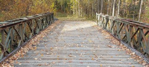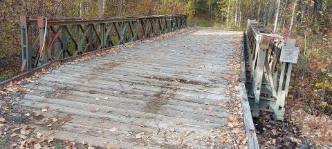 This is one of four existing railway bridges on the old Kettle Valley Railway, now Trans Canada Trail, that were converted from railway bridges to pedestrian/biking friendly crossings for the trail. The crossings were completed by the Canadian Military Engineers, assisted by the Royal Engineers on two of the crossings from 2002 to 2004.