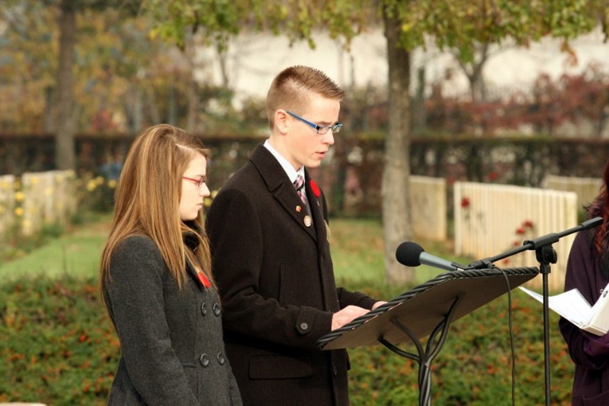 Une personne jeune récite la Promesse de se souvenir lors des cérémonies pour ne pas oublier les sacrifices des militaires.