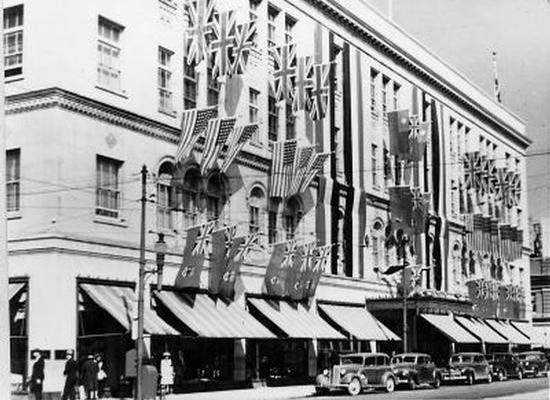 Un grand magasin Eaton's a été décoré pour l'occasion à Calgary, en Alberta (le 15 août 1945). Photo : Archives Glenbow NA-2304-1