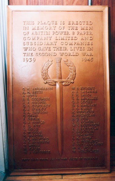 Plaque de la Seconde Guerre mondiale de l’Abitibi Power & Paper