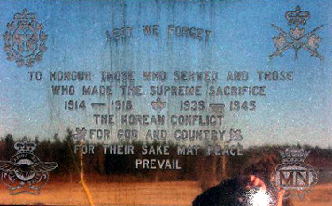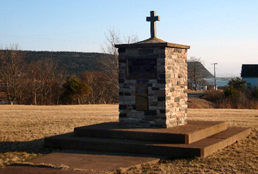 Ce mémorial est dédié aux anciens combattants et aux morts des Première et Seconde Guerres mondiales, de la guerre de Corée et des missions au service de la paix. C’est au mois de février 1984 qu’a débuté dans le district 10 la campagne de porte-à-porte visant à recueillir des fonds pour ériger un cénotaphe en l’honneur des hommes et des femmes qui ont combattu au cours des Première et Seconde Guerres mondiales et de la guerre de Corée. Cette campagne était commanditée par l’association de développement du district d’Advocate (Advocate District Development Association, A.D.D.A.)., connue auparavant sous le nom d’Advocate Action Association, et s’étendait aux communautés de Fraserville, Allenville, Spencer’s Island, East Advocate, Advocate Harbour, West Advocate, New Salem et Apple River. Selon les comptes rendus officiels, c’est dans cette région que le taux d’enrôlement a été le plus élevé au Canada, à l’est de l’Ontario. Les plans du cénotaphe – une structure de pierre portant une plaque de pierre africaine noire et devant être érigée devant le centre récréatif Fundy Tides – ont été établis par un comité composé d’Ashley H. Morris (à la présidence), D.K. Gamblin et Carson Spicer, tandis que Holly Spicer, Roland Berry, Walton Rector, Don Gamblin et Carson Spicer se sont chargés de la collecte. L’association de développement prévoyait que les résidents du district répondraient généreusement et que le cénotaphe pourrait être érigé au printemps 1985. Dans une lettre adressée au Halifax Chronicle-Herald, à Amherst (Nouvelle-Écosse), et datée du 22 septembre 1985, le président du comité du cénotaphe signalait à M. Tom McCoag (un correspondant) qu’un cénotaphe devait être inauguré le dimanche 10 novembre 1985, à 14 heures, afin d’honorer la mémoire des hommes et des femmes du district ayant participé aux deux conflits mondiaux et à la guerre de Corée. La construction du cénotaphe a été rendue possible grâce au généreux soutien financier des habitants de ce secteur du comté de Cumberland, ainsi que d’hommes et de femmes de tout le Canada et des États-Unis qui étaient originaires de la région et qui ont servi dans les forces canadiennes. Le colonel Stanley D. Rhodenizer, ancien secrétaire du Commandement de la Légion royale canadienne pour le Nouveau-Brunswick et commandant retraité du Corps des commissionnaires du Nouveau-Brunswick, qui habitait alors à Amherst, était le conférencier invité. Un certain nombre de dignitaires nationaux et provinciaux avaient aussi été invités à prendre part à la cérémonie, qui a été suivie d’une réception au centre récréatif Fundy Tides.