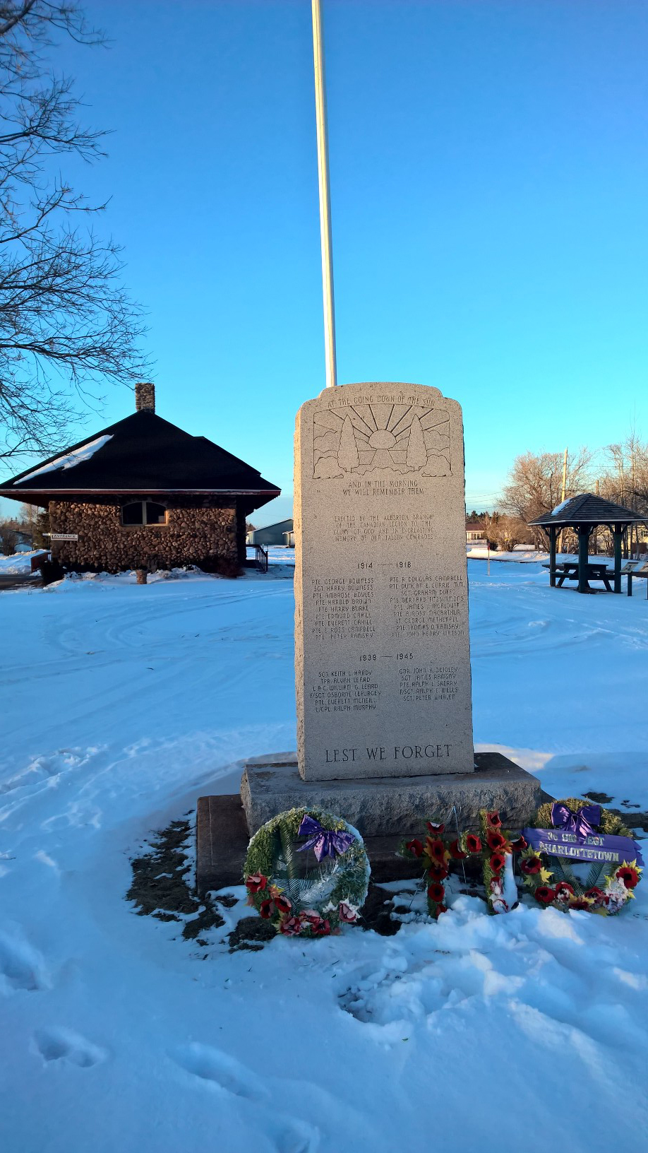 Érigé par la filiale locale de la Légion royale canadienne, ce mémorial est dédié aux résidents morts dans le cadre des Première et Seconde Guerres mondiales. Une réplique exacte de ce mémorial est située dans un parc municipal à Alberton.