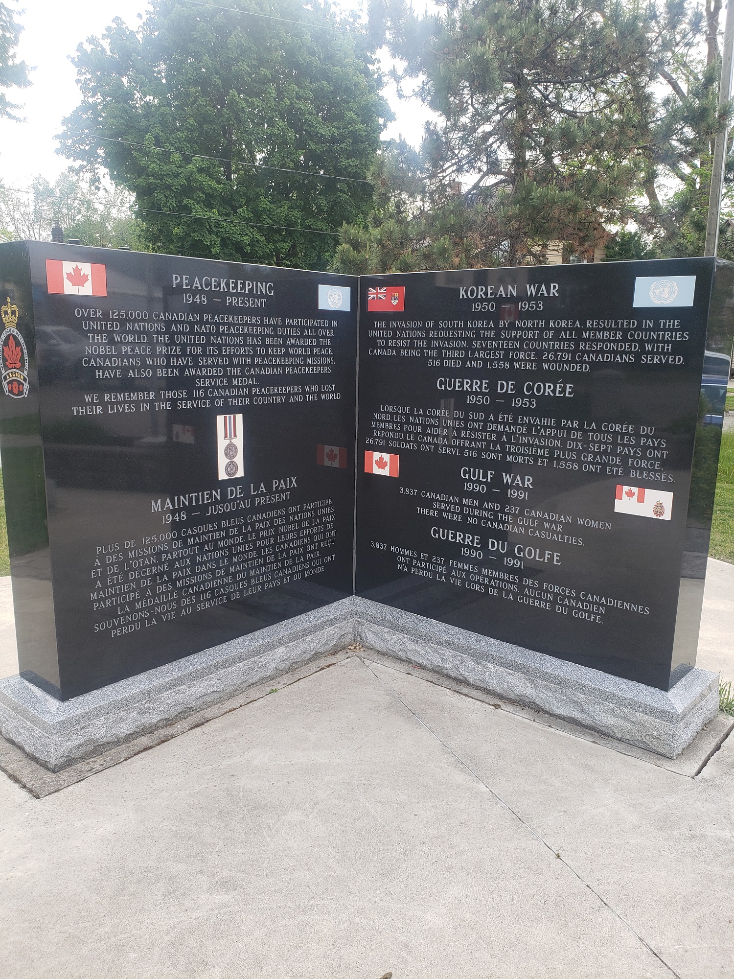L’œuvre honorant les militaires a été réalisée par l’artiste David Craig. Les monuments commémoratifs des ailes sont fabriqués à partir de pierre noire suprême d’Inde. Sur le côté ouest se trouvent des consécrations des vétérans de la Corée, de la guerre du Golfe et de missions de maintien de la paix. Le côté est rend hommage aux vétérans qui ont servi en Afghanistan.