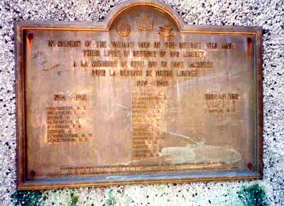 Érigé par la filiale no 141 de la Légion royale canadienne, ce monument commémoratif est dédié à la mémoire des victimes locales de la Première et de la Seconde Guerres mondiales, ainsi que de la guerre de Corée.