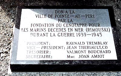 Ce mémorial, érigé en 1995 par la filiale no 36 (Joseph Keable, VC, MM) de la Légion royale canadienne et par la Fondation pour le cénotaphe des marins décédés, est dédié à la mémoire des 15 marins originaires du Bas-St-Laurent décédés en mer lors de la Seconde Guerre mondiale.