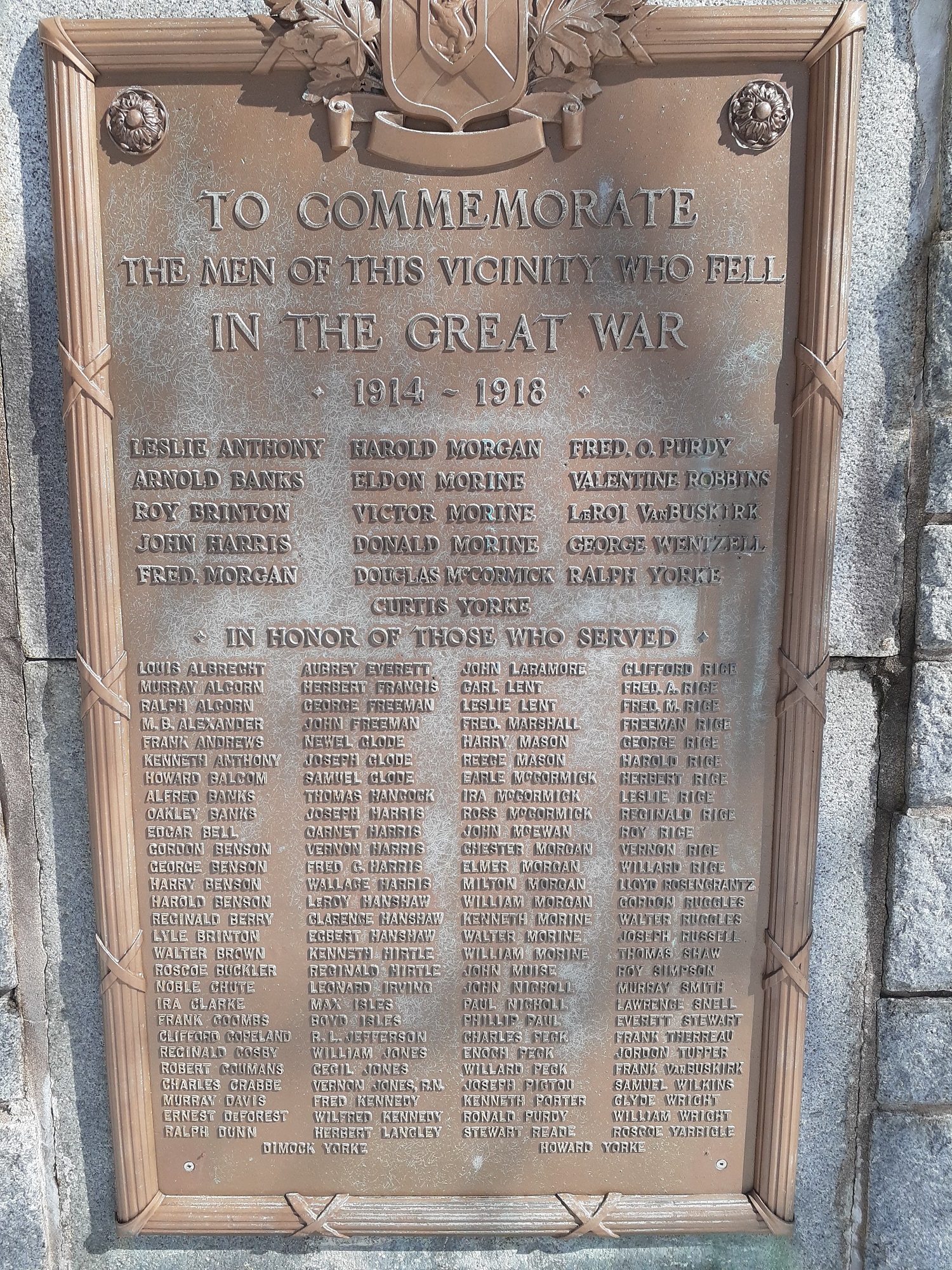 Ce mémorial, érigé sous les auspices du Bear River Woman’s Institute, a été dédié en novembre 1932 à ceux et celles qui ont servi durant la Première Guerre mondiale. Un service annuel est célébré le 11 novembre et des couronnes y sont déposées. L’entretien est la responsabilité de la filiale no 22 de la Légion royale canadienne. En 1996, l’organisation Rebekah a fait un don de 10,000$ pour assurer l’entretien futur du monument. En 1970, les membres de la Légion de Bear River ont considéré l’idée d’ajouter les noms des anciens combattants de la Seconde Guerre mondiale à ceux de la Première. Après plusieurs années d’étude, ils ont finalement décidé de ne pas altérer la première plaque mais d’en placer une nouvelle en bronze en hommage aux soldats de la Seconde Guerre mondiale et de la guerre de Corée. Elle fut dévoilée en 1986. Trois ans plus tard, une plaque en bronze énumérant les noms des morts des deux guerres fut installée au bas du monument.