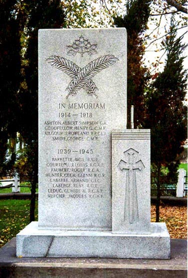 Cette stèle est dédiée à la mémoire des braves de Beauharnois morts au cours des deux grands conflits mondiaux.