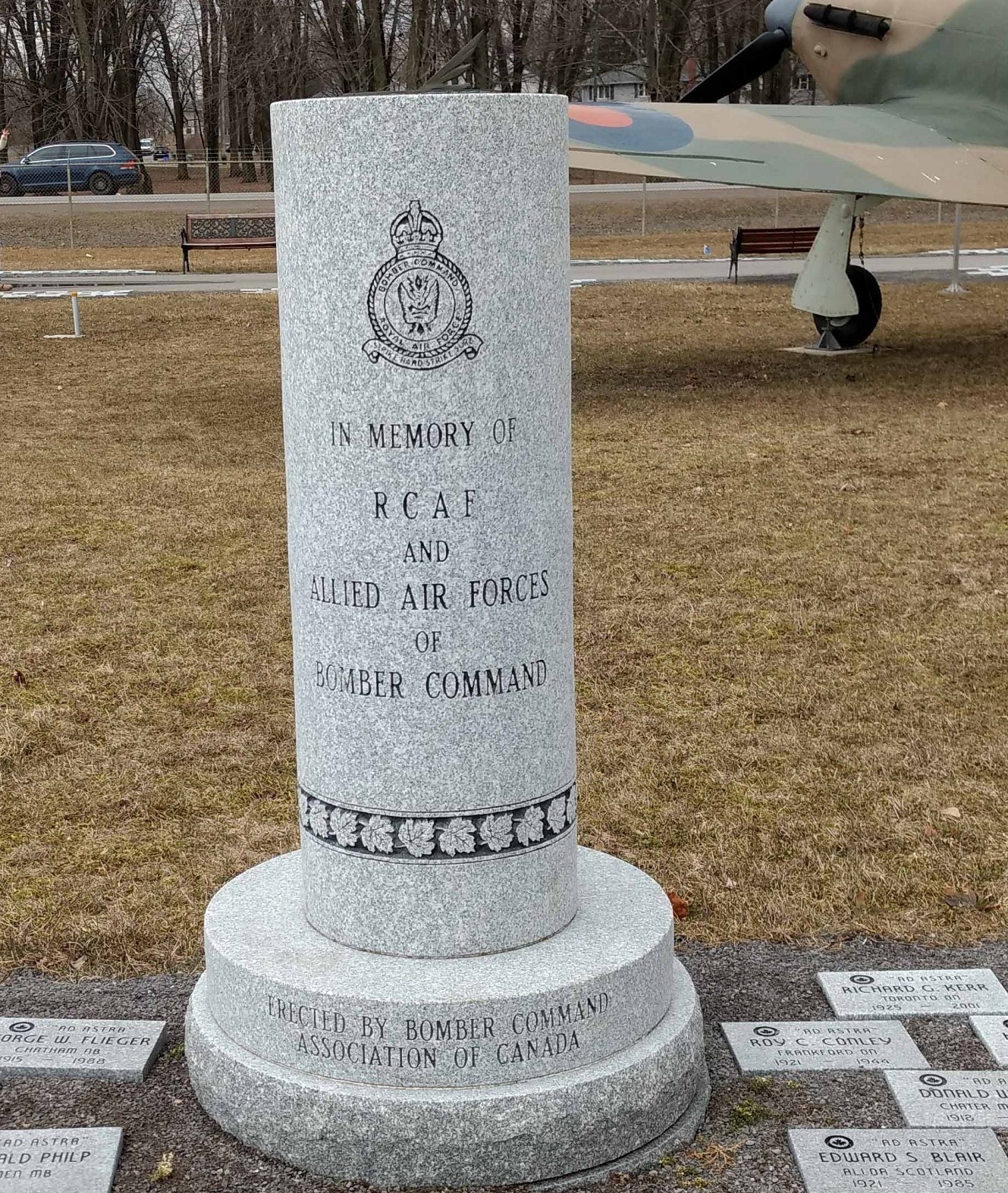Ce mémorial érigé par la Bomber Command Association of Canada est dédié aux membres de la force de bombardement de l’ARC et des aviations alliées. Il a été érigé par la Bomber Command Association of Canada à une date inconnue avant 2002.