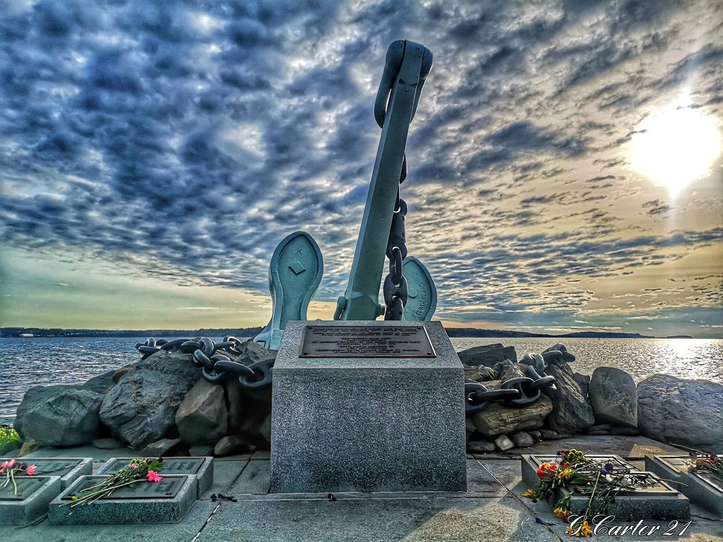 L’ancre est un monument commémoratif pour ceux qui sont morts en servant dans la Marine canadienne en temps de paix et les noms sur les panneaux sont ceux des personnes qui n’ont pas de tombe connue au Canada. La chaîne reliant l’ancre à l’eau représente un lien avec les personnes perdues en mer ou enterrées sur des terres étrangères. Sa déclaration de dédicace se lit comme suit : « Commémorer les membres des Forces armées du Canada qui ont perdu la vie en mer dans l’exercice de leurs fonctions et pour lesquels il n’y a pas de sépulture connue. » [traduction] À une date inconnue, la dédicace a été modifiée comme suit : « Dédié aux hommes et aux femmes morts au service de la Marine canadienne en temps de paix. »