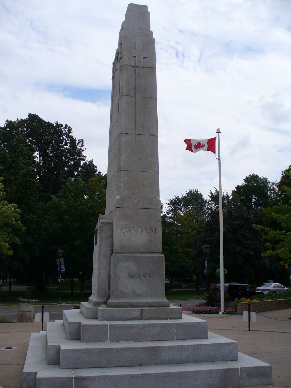 Le mémorial symbolise le Service dans une ascension graduelle entre l’inaction, le service et le sacrifice, jusqu’à l’accomplissement final récompensé par la Couronne de la Victoire. Avant la construction du cénotaphe, les cérémonies du jour du Souvenir avaient lieu dans les diverses églises de Brampton et au manège militaire, à partir de l’année 1919.