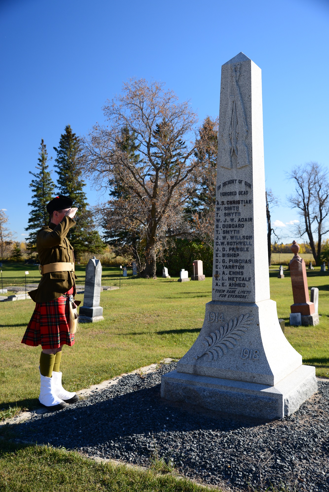 Un obélisque égyptien stylisé a été commandé par la congrégation de l’église presbytérienne de Brant-Argyle pour commémorer les hommes de la région qui ont été tués pendant la Première Guerre mondiale. Le monument, fait de marbre blanc, en trois morceaux, a été expédié à Argyle par le Chemin de fer Canadien du Nord. Les pères de famille de la région (dont plusieurs avaient perdu leurs fils) se sont rassemblés à la gare et ont utilisé de lourds chariots et des chevaux pour transporter les trois pièces sur un demi-mille vers le nord, jusqu’à la cour de l’église. Les hommes ont ensuite assemblé les pièces sur place.