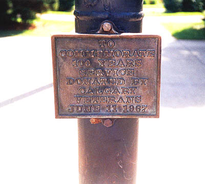 TO COMMEMORATE 100 YEARS SERVICE DONATED BY CALGARY VETERANS JUNE 11 1967