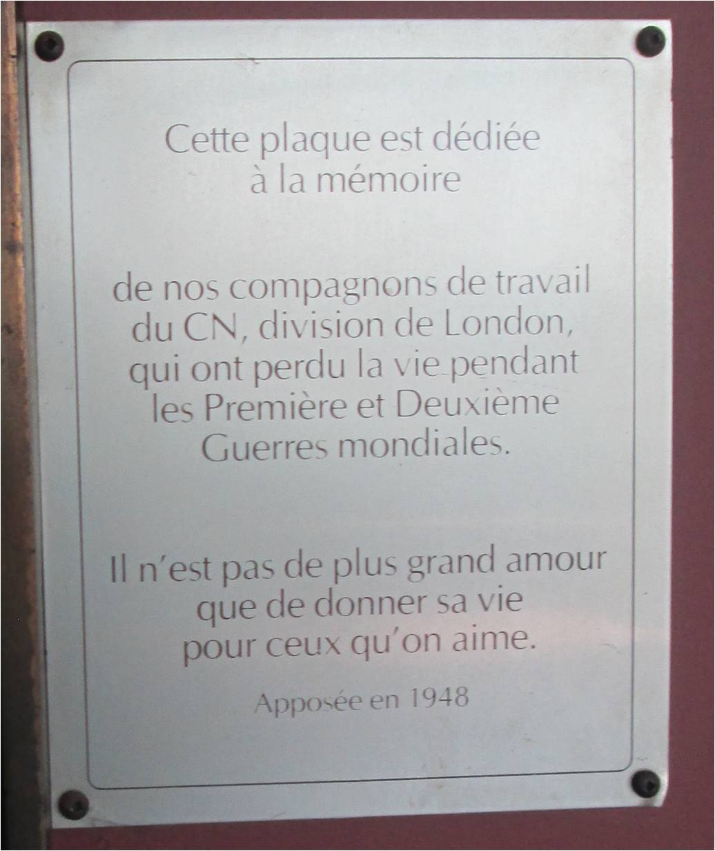 Cette plaque commémorative honore les employés de la division de London de la société qui ont donné leur vie au cours de la Première Guerre mondiale et de la Seconde Guerre mondiale.