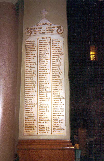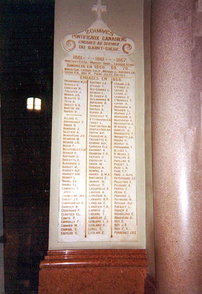 Ce mémorial est dédié aux Zouaves Pontificaux canadiens de 1868 à 1870.