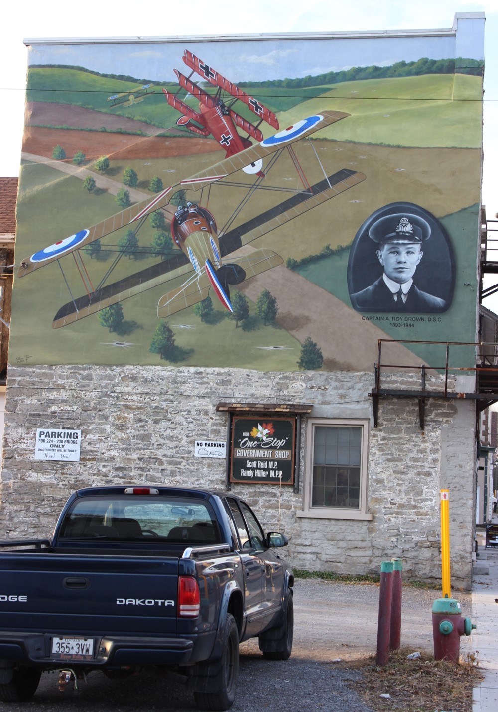 Cette murale est dédiée au capitaine Arthur Roy Brown, DSC, pilote canadien ayant servi au cours de la Première Guerre mondiale et à qui on attribue officiellement d’avoir abattu Manfred von Richthofen, le « Baron rouge ». Cette murale a été dévoilée le 13 novembre 2012.