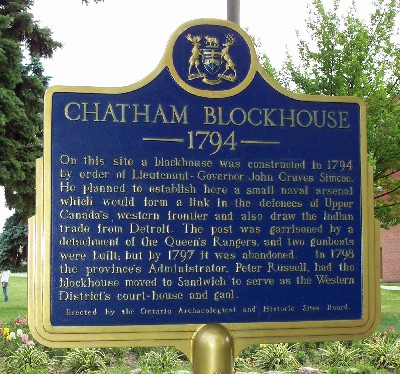 Cette plaque rappelant l’emplacement du blockhaus de Chatham en 1794 a été posée en 1958.
