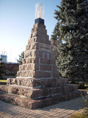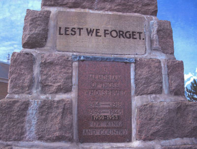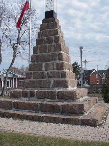 À l’origine, le monument était placé sur le terrain d’une église locale. En 1948, une tablette portant des inscriptions fut achetée à la demande de la filiale locale de la Légion royale canadienne, puis fut dévoilée le 11 novembre 1948. En 1957, le monument commémoratif fut déplacé du terrain de l’église à l’hôtel de ville, soit son emplacement actuel.
