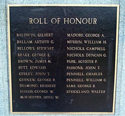 ERECTED TO THE MEMORY OF THOSE WHO GAVE THEIR LIVES FOR THE CAUSE OF FREEDOM AND LIBERTY IN THE GREAT WAR