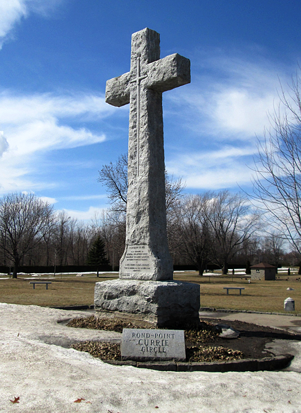 Ce carrefour giratoire est nommé en l’honneur du général Sir Arthur Currie, GCMG, KCB, VD, Légion d’honneur et Croix de Guerre (avec palme - France, Ordre de la Couronne et Croix de Guerre – Belgique, Distinguished Service Medal (médaille pour service distingué) – É.-U. Au centre du carrefour giratoire se trouve un autre monument commémoratif (NICMM 24029-012) érigé en l’honneur du général Sir Arthur Currie et des membres de l’armée qui ont donné leur vie.