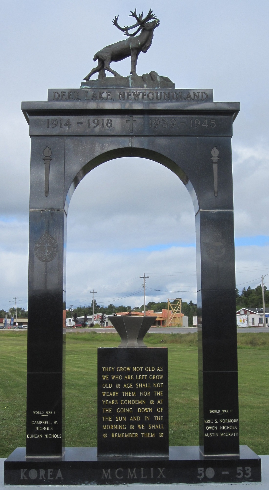 Le Cénotaphe de Deer Lake a été érigé par la filiale no 3 de la Légion royale canadienne en 1960. Il a subi des dommages irréparables en septembre 2019.