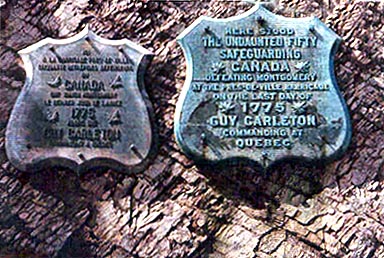 HERE STOOD THE UNDAUNTED FIFTY SAFEGUARDING CANADA DEFEATING MONTGOMERY AT THE PRES-DE-VILLE BARRICADE ON THE LAST DAY OF 1775 GUY CARLETON COMMANDING AT QUEBEC