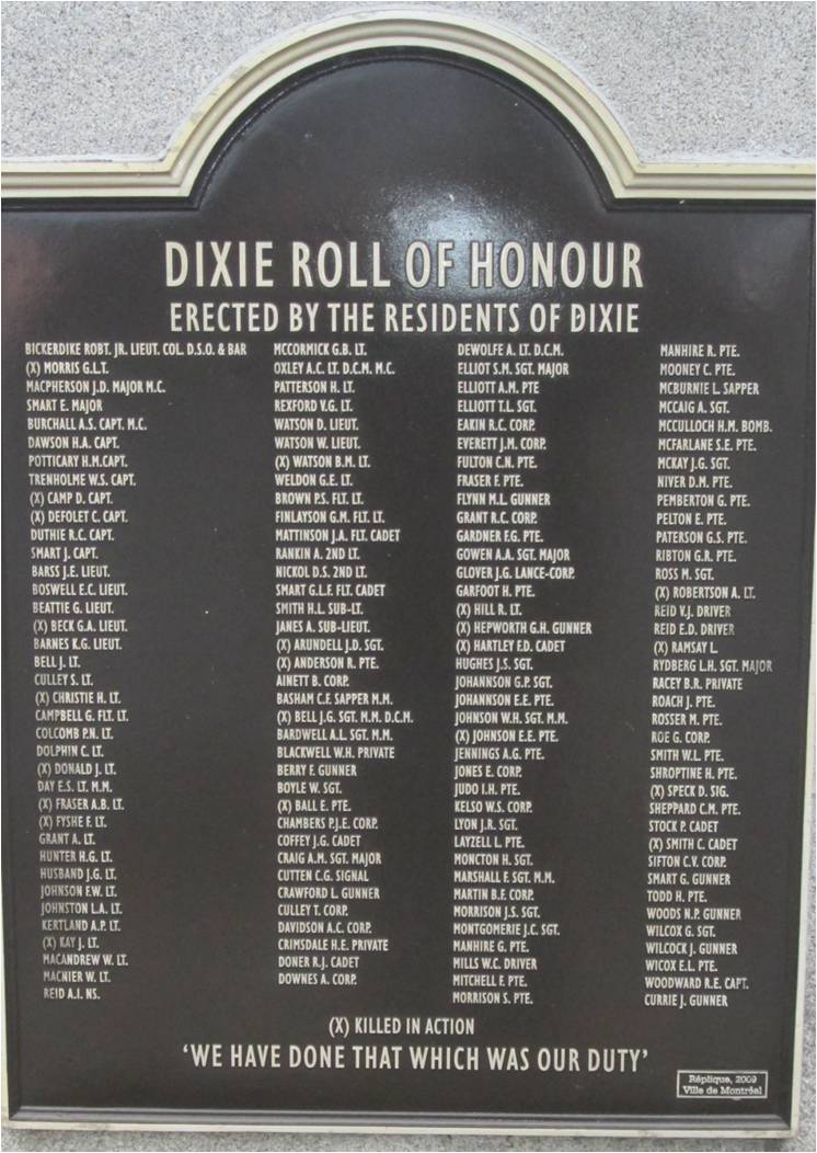 Le Tableau d’honneur original a été érigé par les résidents de ce qu’on appelait auparavant le district de Dixie, honorant 147 soldats du district qui ont servi pendant la Première Guerre mondiale. Vingt-deux d’entre eux ont été tués au combat.
