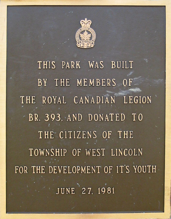 Le monument commémoratif, érigé en 1981, est dédié par la filiale 393 de la Légion royale canadienne au camarade Doug Henderson pour sa contribution et son dévouement.