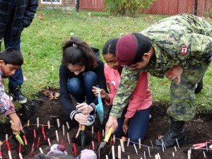 Le jardin des tulipes de l’amitié entre les Pays-Bas et le Canada a été créé en 2015 par l’école publique, en partenariat avec le programme Collectivités en fleurs. Des bénévoles ont planté et agencé des bulbes de tulipes rouges et blanches dans les plates-bandes. Au printemps prochain, les tulipes offriront un rappel visuel du lien qui unit les deux pays.
