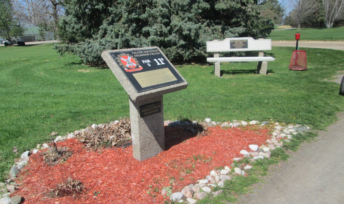Cette plaque est l'une des 39 plaques dévoilées au Club de golf Hylands en 2009. Les plaques commémorent d'anciennes installations militaires de la région d'Ottawa, une sainte patronne des militaires, des honneurs de guerre, des navires, des unités et des escadrons.